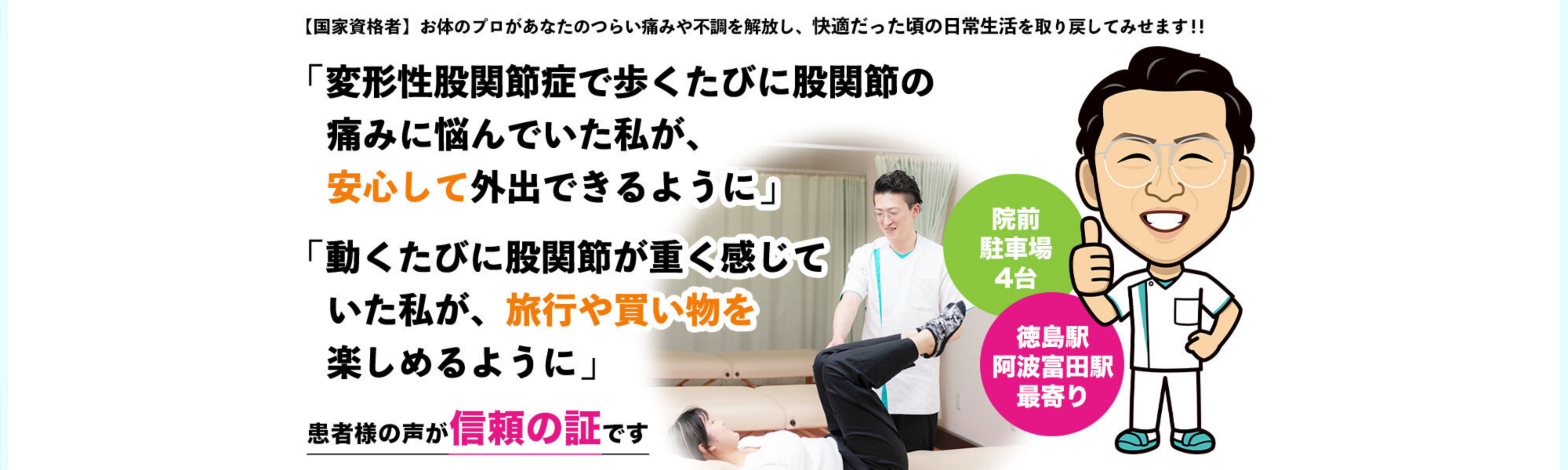 徳島で腰痛・股関節痛・坐骨神経痛・交通事故治療に強い整骨院
